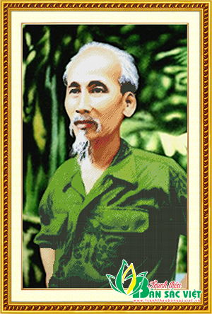 Bác Hồ - vị cha già đồng thời là vị lãnh tụ đáng kính của toàn thể dân tộc Việt Nam. Là người đã sáng lập ra đội Việt Nam tuyên truyền giải phóng quân - tiền thân của Quân đội nhân dân Việt Nam. Tranh thêu Bác Hồ NV019 được thiết kế họa lại bức ảnh bác Hồ ở chiến khu Việt Bắc trong những năm kháng chiến chồng thực dân Pháp. Trong màu xanh áo lính, hình ảnh của Người hiện lên với tất cả những nét giản dị thân thương nhất, ánh mắt sáng ngời, chứa đựng đầy niềm tin vào con đường cách mạng anh tuy gian khổ những tất thắng.